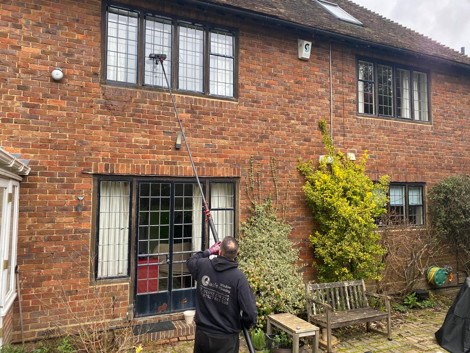 We at Oasis Window Cleaning offer a experienced friendly reliable service. We provide traditional methods of cleaning as well as the water-fed pole system style of cleaning (see below)